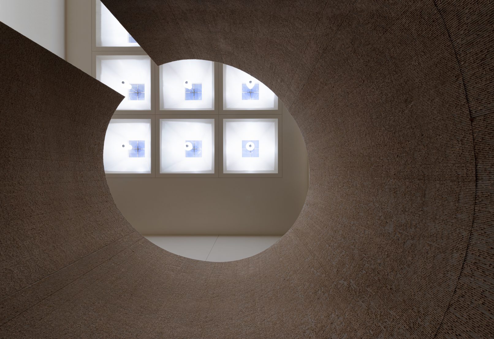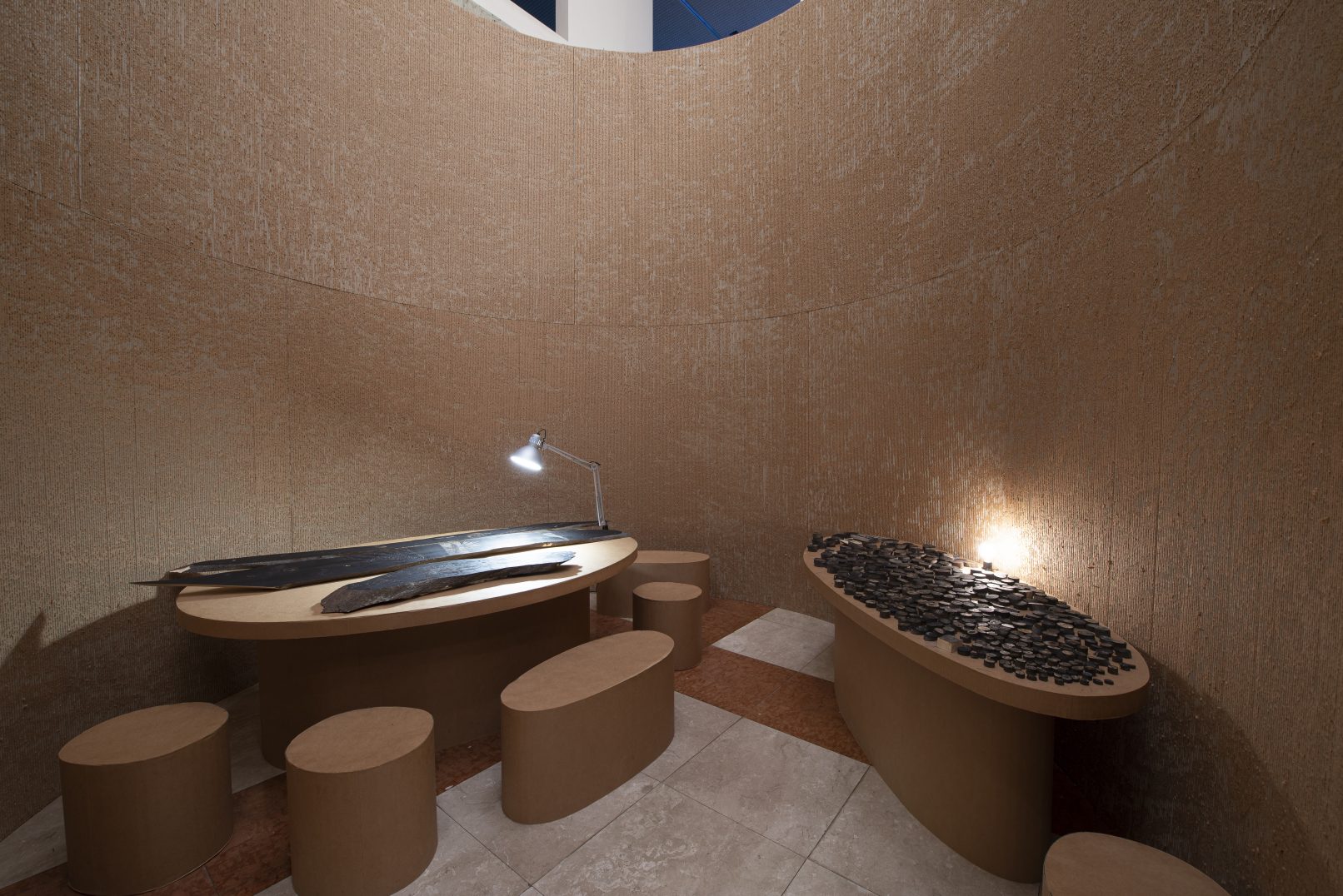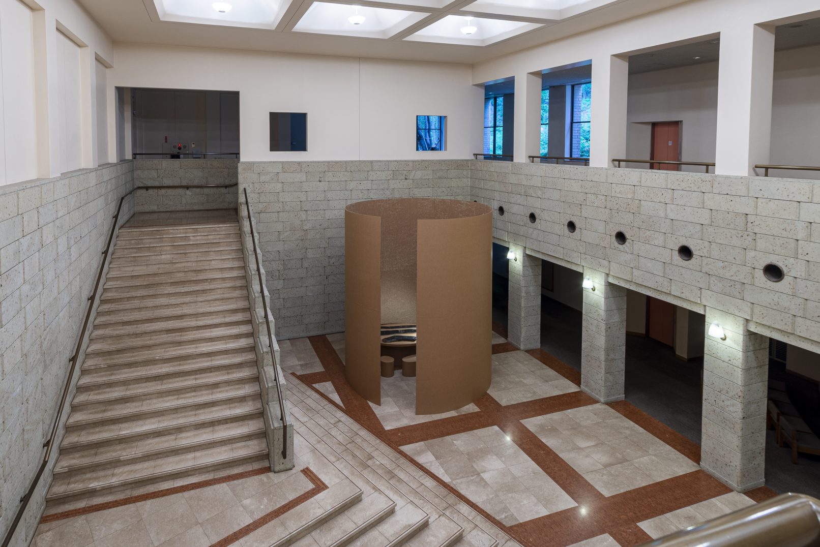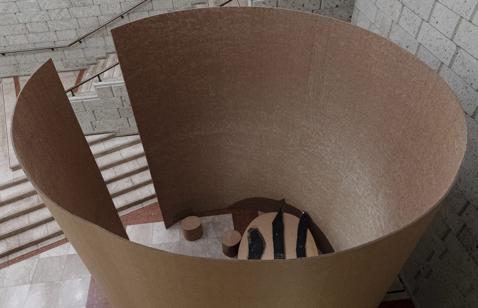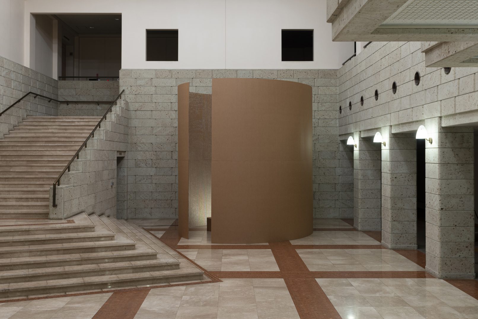 個展会期中に美術館のエントランスホールの吹き抜けに設置され、作家の滞在制作、参加者との共同制作の場となった。
